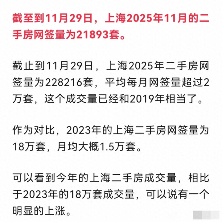 上海楼市,这个曾让无数购房者心潮澎湃又忐忑不安的舞台,如今再次成为焦点。截至11月29日,2025年11月的二手房网签量已高达221893套,这一数字不仅令人咋舌,更在不经意间超越了2023年全年的网签总量。这究竟是一场怎样的楼市盛宴?背后又隐藏着哪些不为人知的秘密?