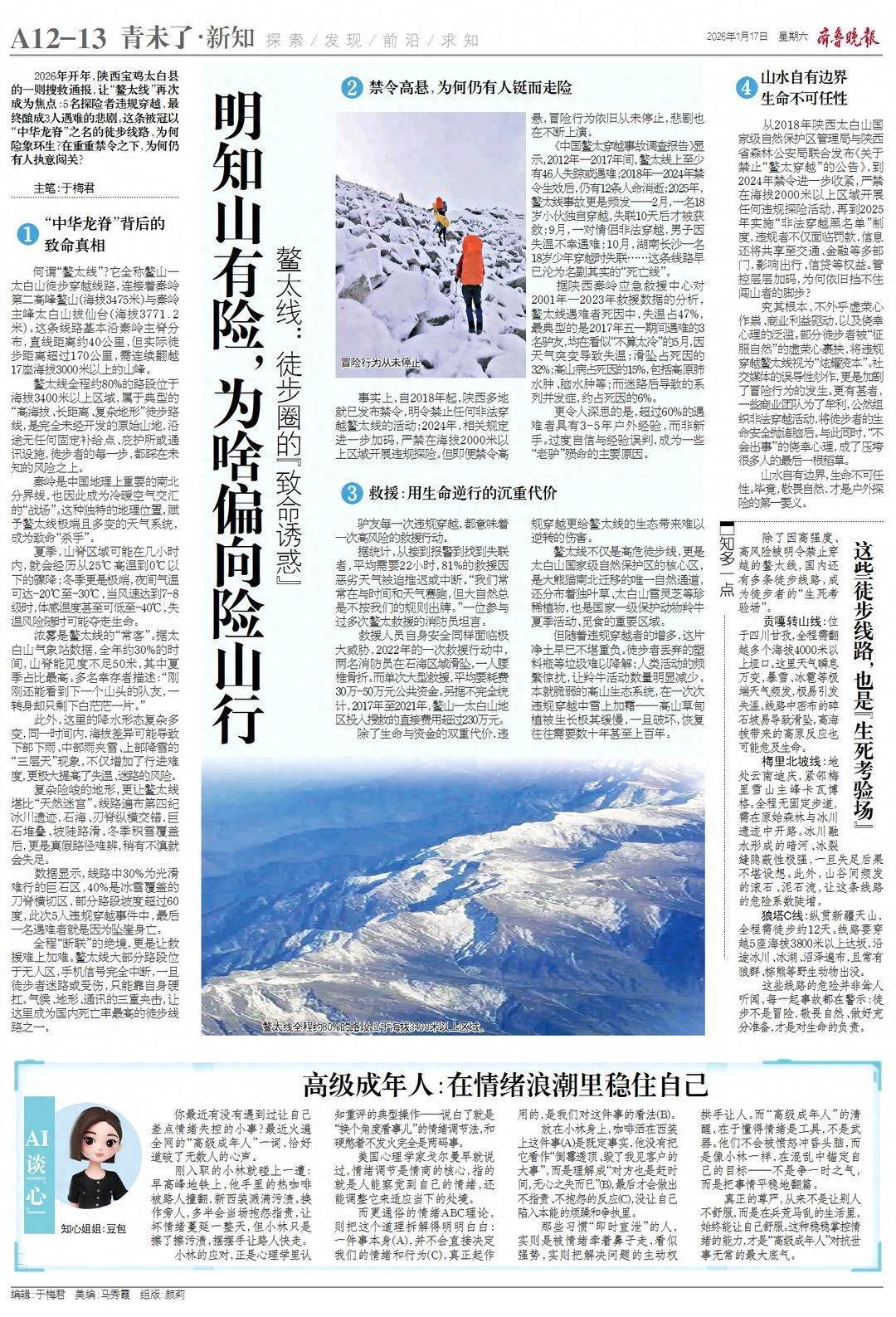 2026年开年,陕西宝鸡太白县的一则搜救通报,让“鳌太线”再次成为焦点:5名探险者违规穿越,最终酿成3人遇难的悲剧。这条被冠以“中华龙脊”之名的徒步线路,为何险象环生?在重重禁令之下,为何仍有人执意闯关?