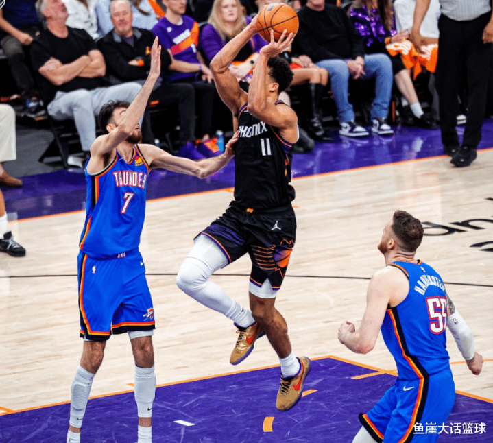 第三节比赛伊戈达罗补篮得分,霍姆格伦命中三分后布克投篮命中,亚历山大中投命中后吉莱斯皮强投命中,霍姆格伦扣篮得分后格林中投命中,霍姆格伦造成杀伤后亚历山大打成2+1,哈滕罚球4中3后狄龙中投命中,接下来的比赛两队打得有来有往,雷霆一直稳稳保持两位数领先,不过后续布克爆发,加上狄龙的发挥太阳一度追到7分,末尾阶段亚历山大、米切尔顶住反扑,三节比赛结束雷霆领先8分。第四节比赛哈滕打成2+1,格林连得4分后米切尔命中三分,之后两队频频打铁,卡鲁索上篮得分后格林反击得分,米切尔中投命中后亚历山大罚球得分,接下来的比赛雷霆一直保持两位数领先,最终雷霆赢得比赛胜利。