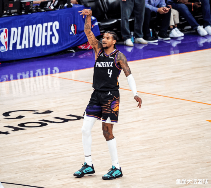 太阳在比赛中打得还是很艰难,尤其是布克在这场比赛中一度打得低迷,虽然第三节后半段布克有所复苏,但这依旧是难改大局,全场比赛结束布克得到了24分6助攻的数据,同时这场比赛布克也是迎里程碑,本场比赛后布克季后赛得分超越纳什(1365分)升至队史第二,仅次于凯文·约翰逊(2026)。至于狄龙和格林在这场比赛中也真的尽力,全场比赛结束格林得到了23分6篮板4助攻的数据,狄龙得到了23分4篮板3助攻的数据,其中正负值+1也是首发最高,同时狄龙也是太阳首发中唯一的正值。